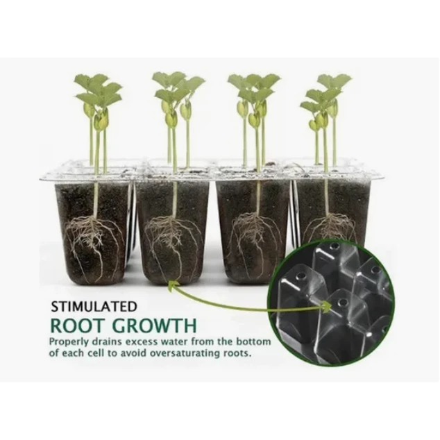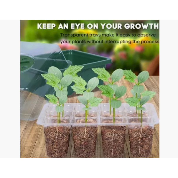 Temperatura e umidade ajustáveis: A abertura ajustável permite regular a temperatura e a umidade das bandejas de mudas. A cúpula de controle de umidade mantém as mudas úmidas e reduz a evaporação da água, proporcionando condições ideais para uma germinação mais rápida das sementes. O fundo da bandeja possui orifícios de drenagem para evitar que as raízes morram devido ao excesso de água.