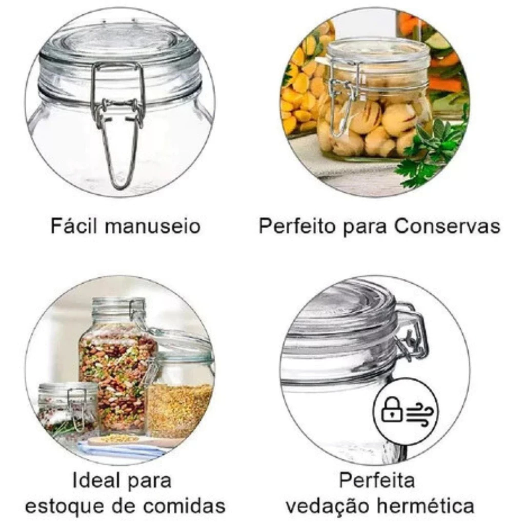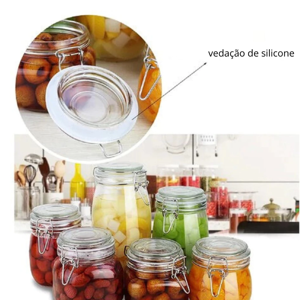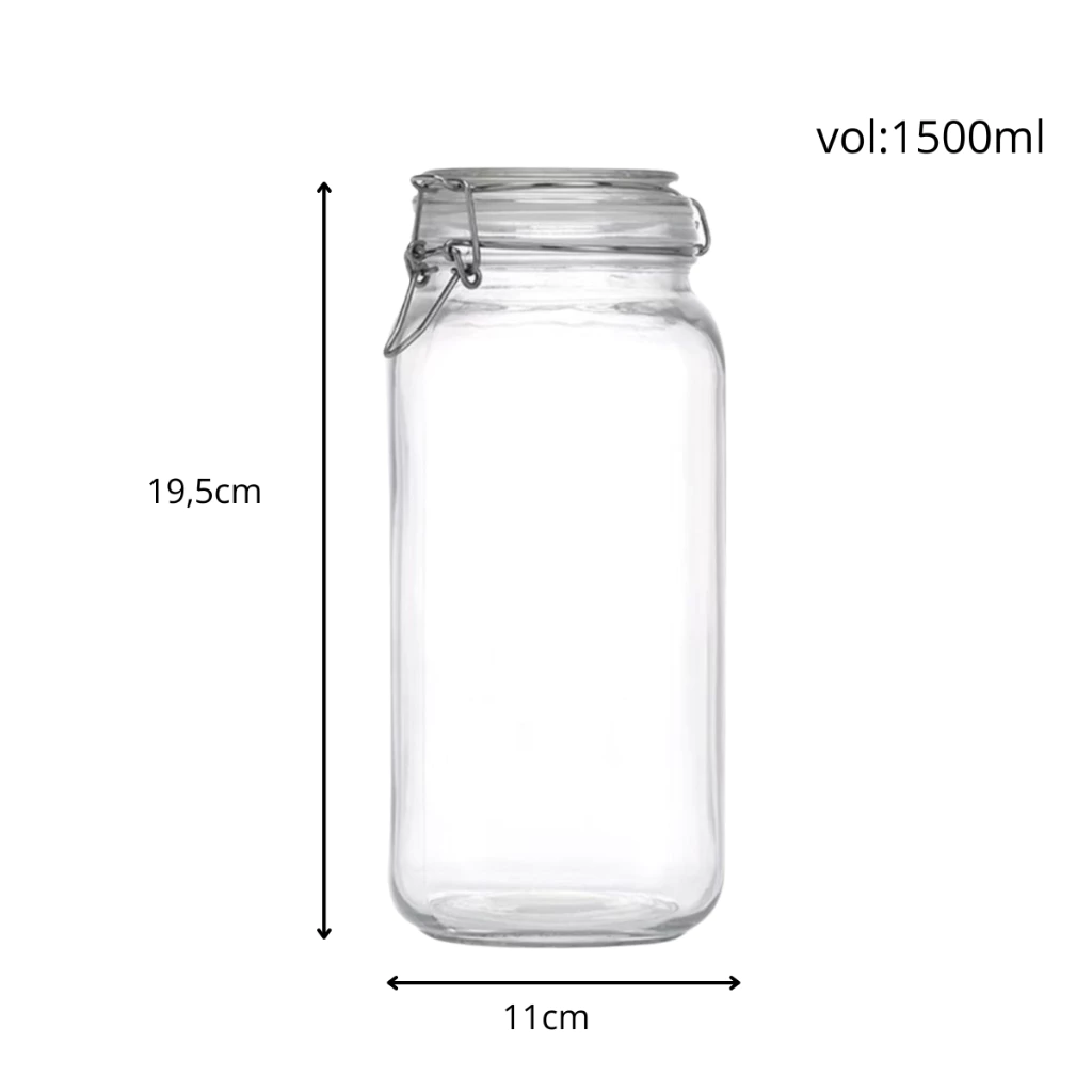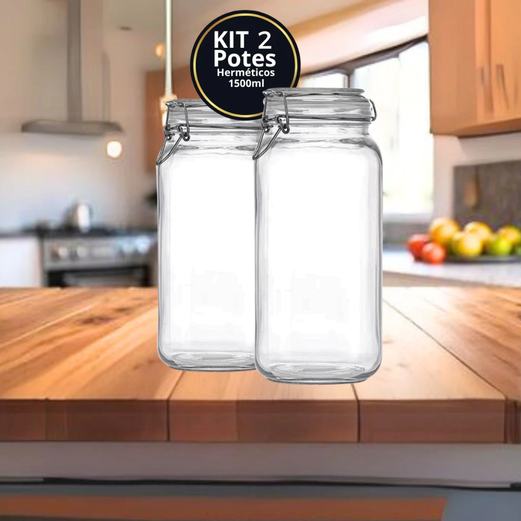 POTE DE VIDRO PREMIUM 1500ML HERMÉTICO COM TRAVA DE INOX KIT OU AVULSO